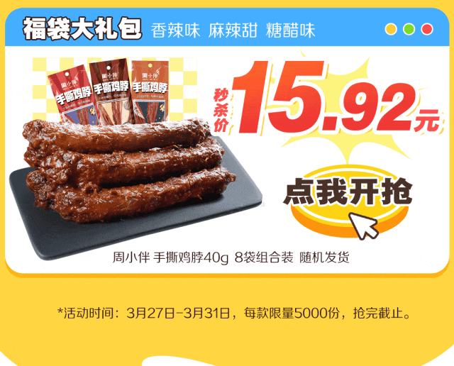 更多福利,关注公众号"周黑鸭官方旗舰店"。
