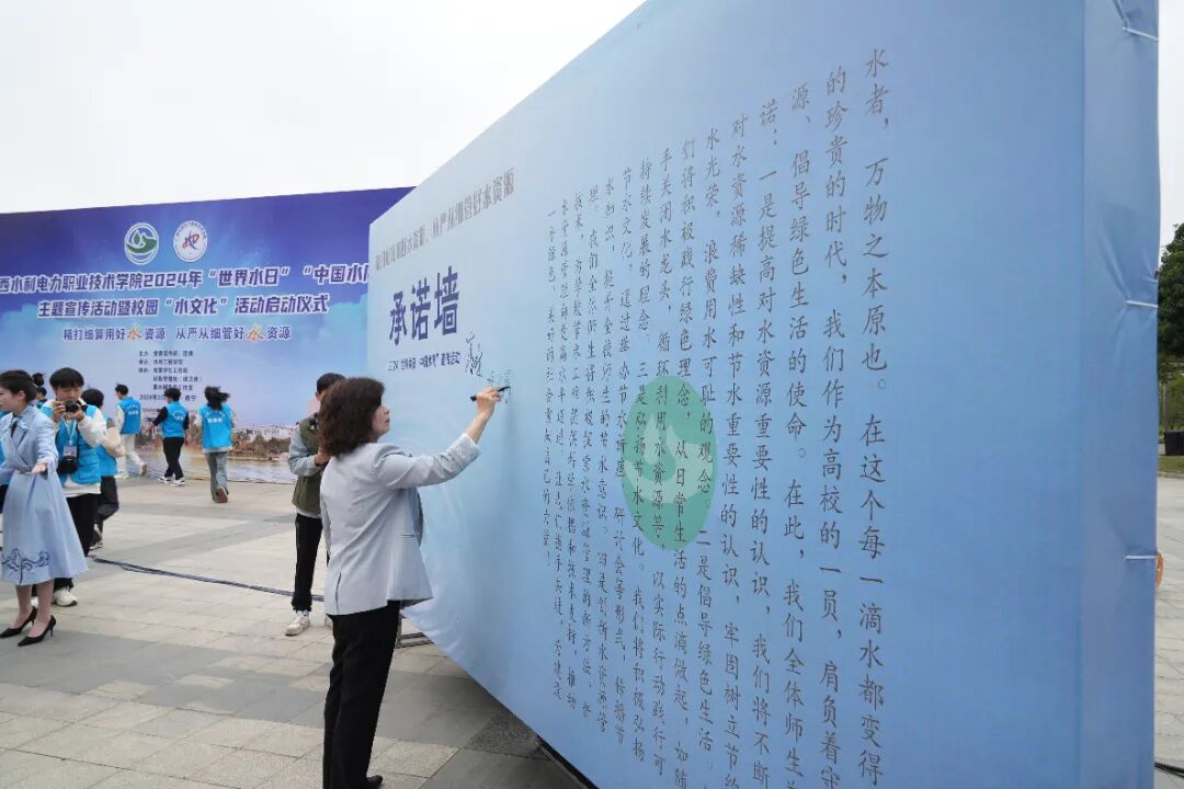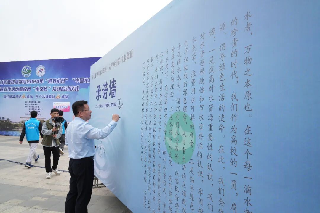 最后,李林宣布学校2024年“世界水日”“中国水周”主题宣传活动暨校园“水文化”活动正式启动!全体师生在节水承诺墙上签名。