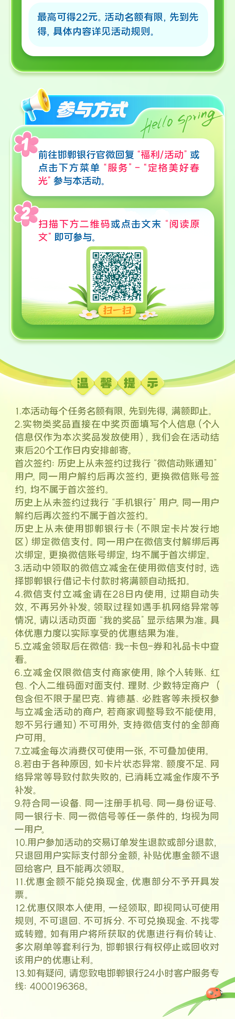 摘要:邯郸银行春日活动火爆进行中,速来参与吧~