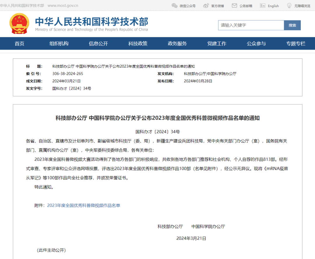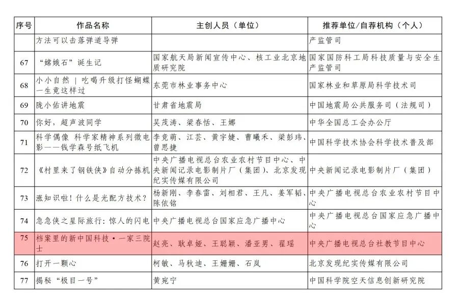 摘要:《档案里的新中国科技·一家三院士》入选2023年度全国百部优秀科普微视频作品