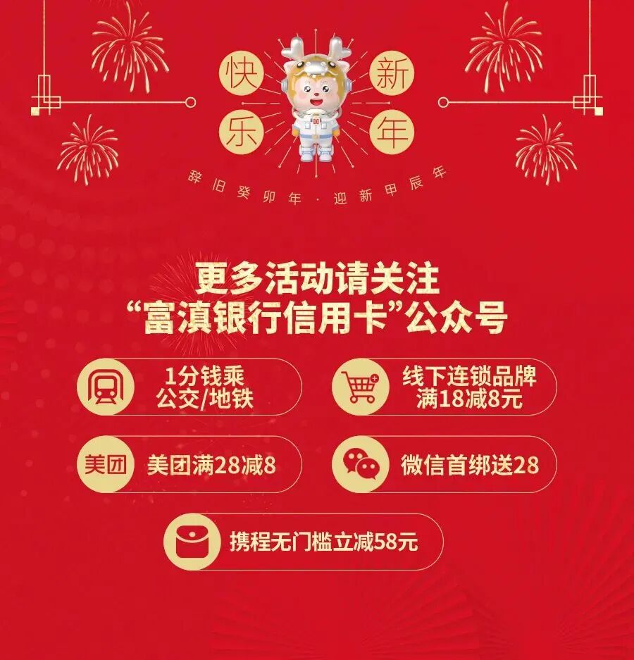 并且首次使用富滇信用卡绑定微信支付钱包,可获赠28元立减金,支付满28.01元即可自动抵扣(生活缴费、理财、少数特定商户不可使用)。