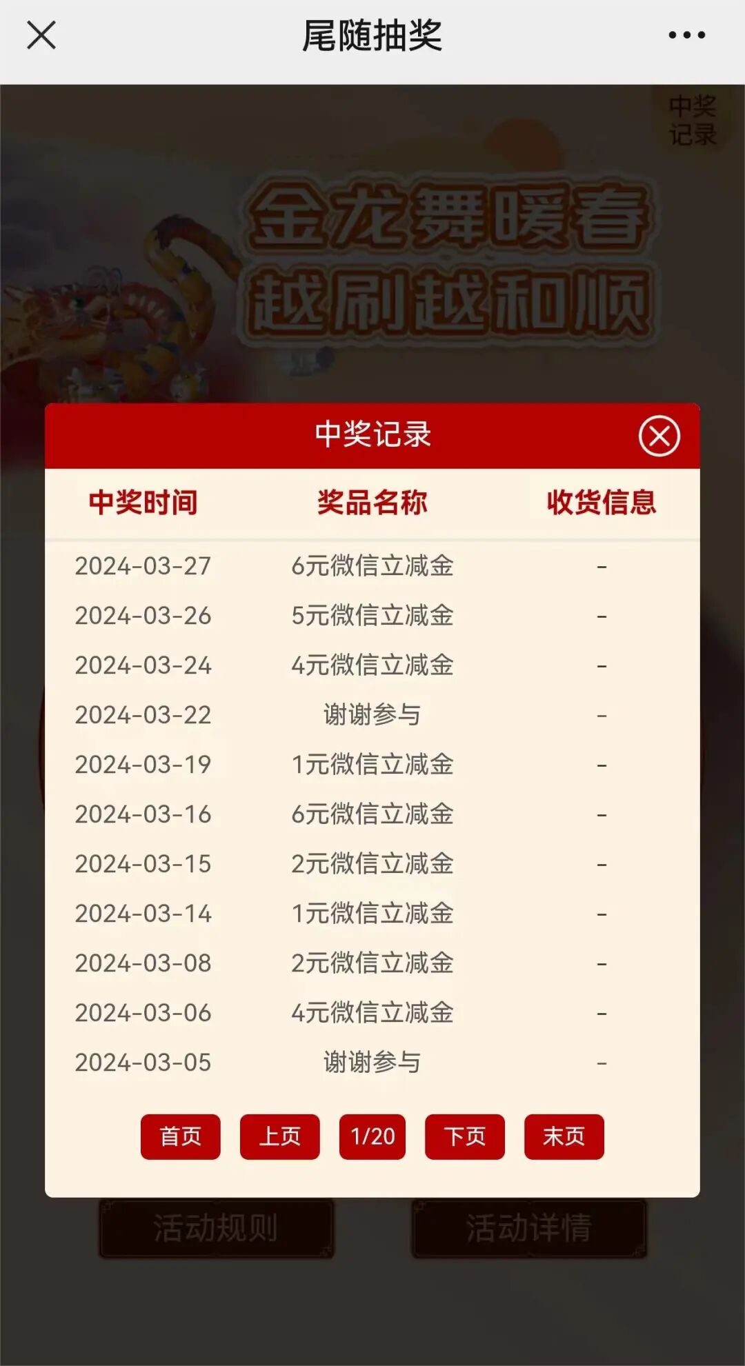 当我们每日首笔全渠道支付满28元(含),可通过微信公众号推送的链接参与微信立减金随机抽奖,最高8元。
