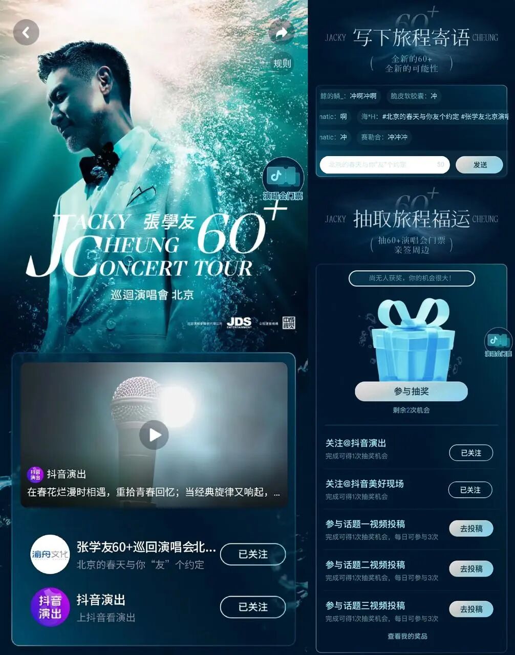 在“张学友60+巡回演唱会北京站”的浪漫气氛下,为了帮助大家充分释放春日悸动的情愫,全面感受春日气息,抖音演出特别打造了“友”你系列主题活动。