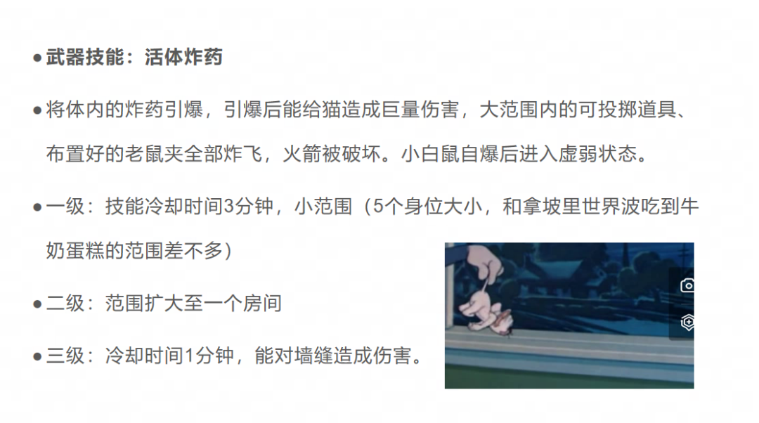 评语:该作品符合猫鼠世界观设计,技能设计清晰,逻辑性强,能够与游戏的核心玩法完美融合,为玩家提供良好的游戏体验。