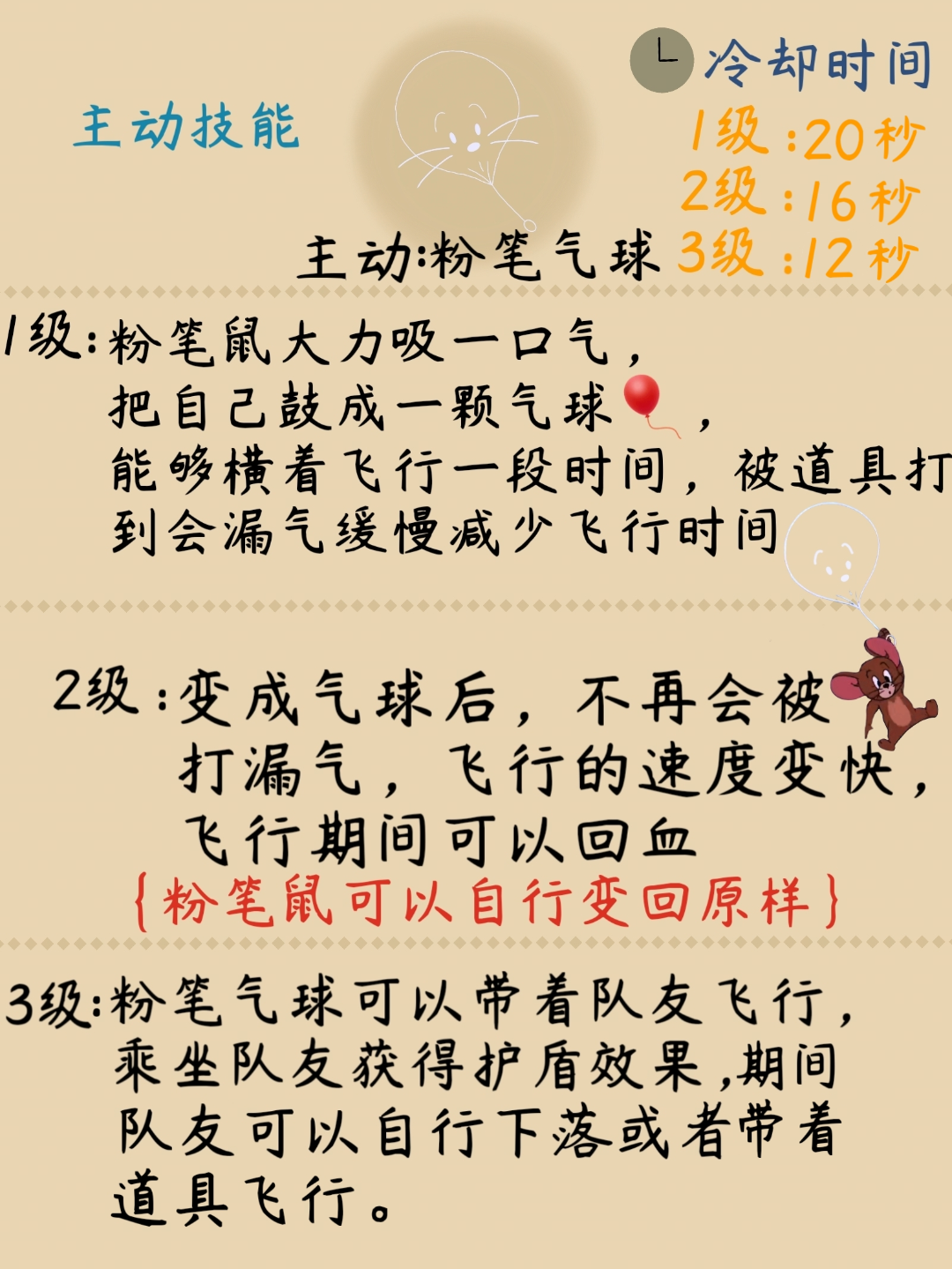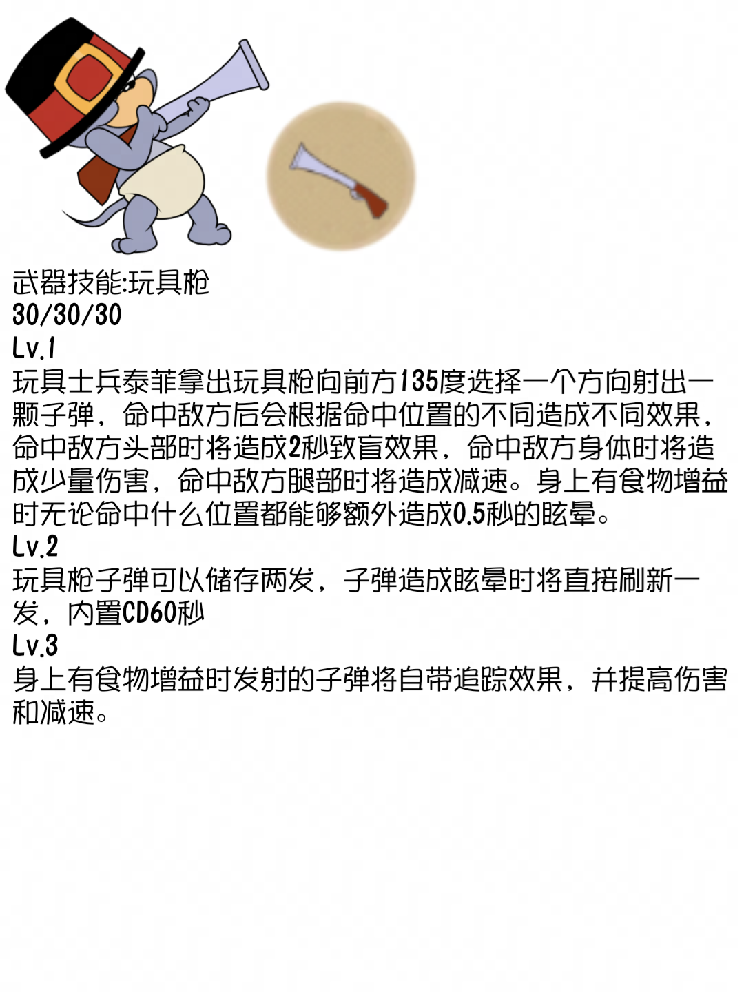 评语:该角色设计与猫和老鼠IP相符合。技能设计完整,与角色设定完美契合。深受大家喜爱,让人印象深刻。