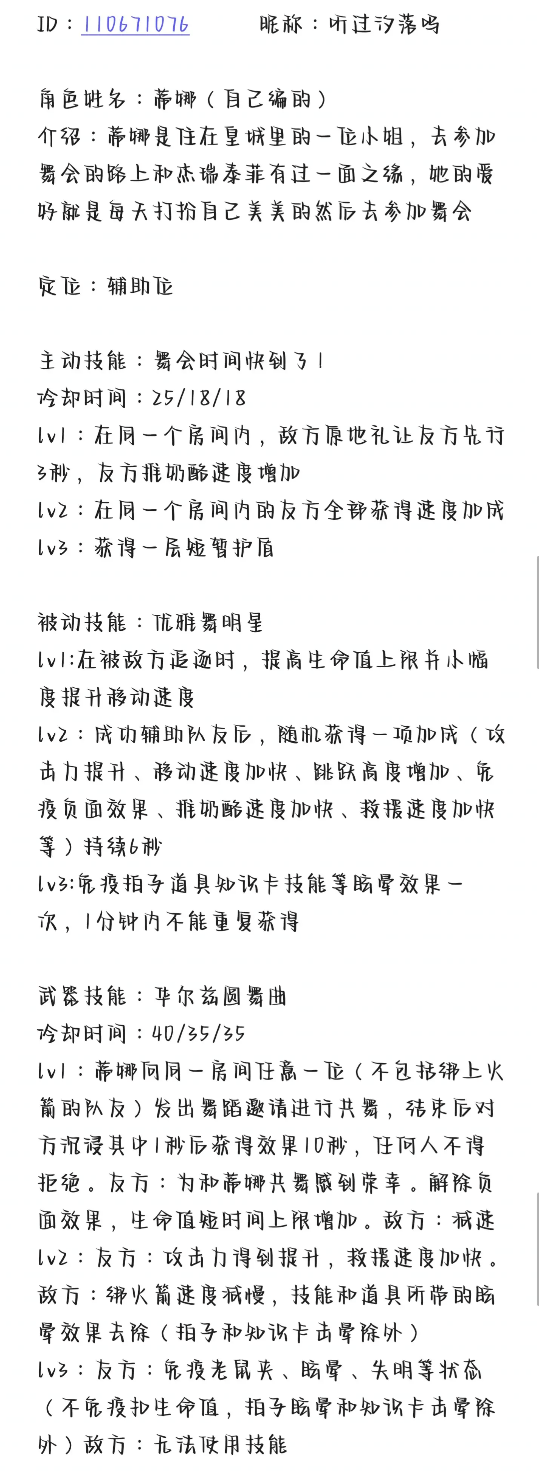 评语:角色的性格特点展现得非常丰富,个性鲜明,给人一种深刻的印象,与游戏的角色设定完美契合。技能设计完整,描述逻辑清晰,备受大家喜爱。