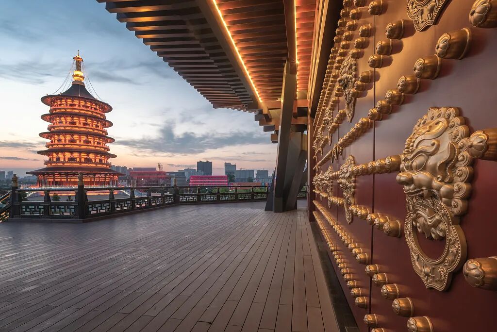 要感受最真实的隋唐盛世,当然不能错过应天门,一度火出圈的河南春晚的大量拍摄场景均取自应天门。跟随流光溢彩的灯光,穿越千年,一见当年那开放大气的盛世景象。