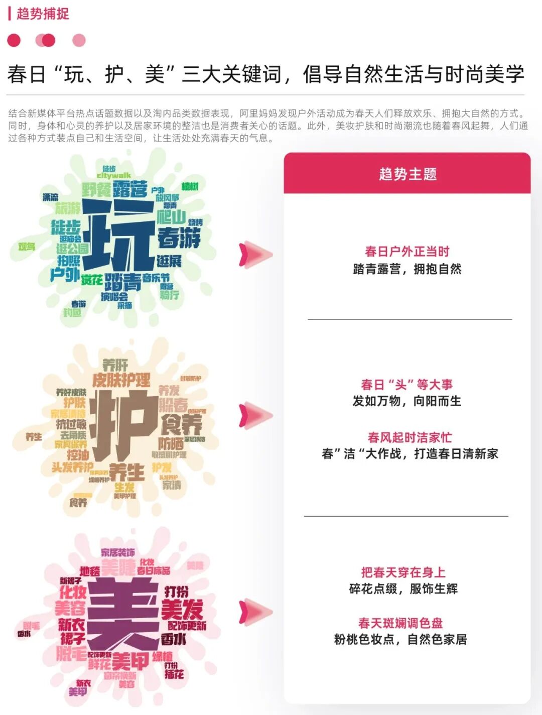 其中,以“玩、护、美”为主要关键词的三大类消费热度居高不下。