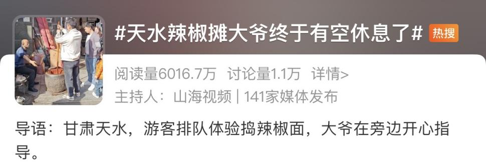 这个春天,有人去甘肃排队体验天水捣辣椒面;让捣辣椒的老大爷休息休息;