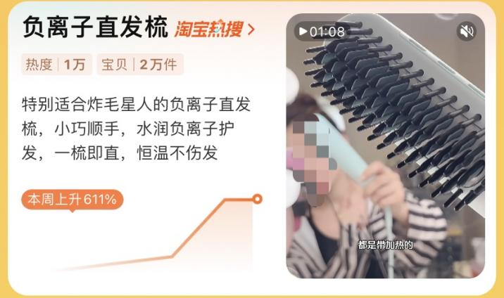 春日空气干燥,静电一起,头发易炸毛,让早八的上班族和学生党直呼“伤不起”,也让负离子直发梳在淘宝热搜的热度不断上升。