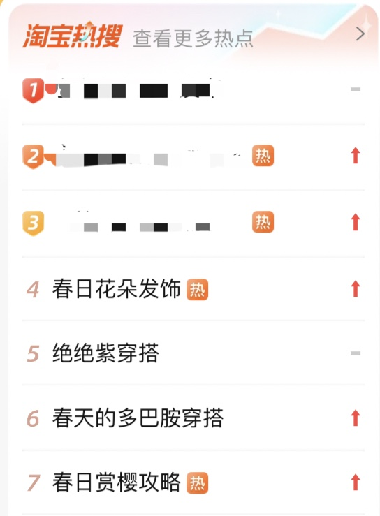春日花朵发饰、绝绝紫穿搭,还有多巴胺穿搭,接连登上淘宝热搜。