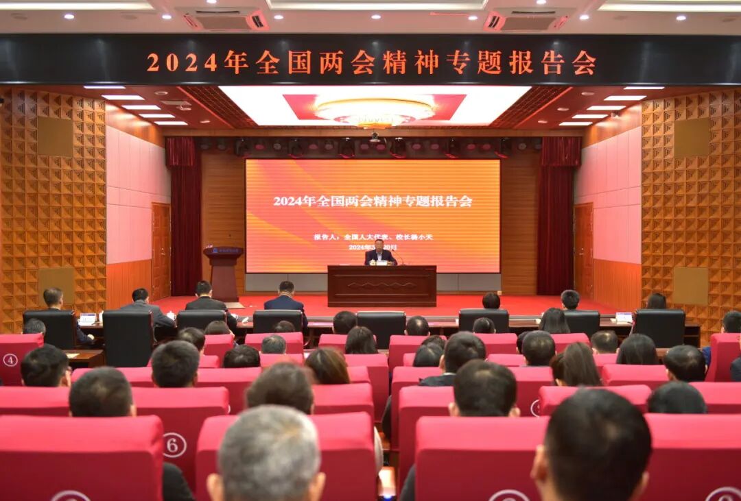 全国人大代表、校长杨小天为全校师生作全国两会精神专题报告。他在报告中分享了作为全国人大代表的亲身经历和履职体会,介绍了2024年全国两会的基本情况,并表示,今年全国两会是在新中国成立75周年、实现“十四五”规划目标任务关键之年召开的一次十分重要的大会。他强调,全校上下要把推动全国两会精神在吉师落细落实作为首要任务,要全面深学细悟,贯彻落实习近平总书记在全国两会期间的重要讲话和全国两会精神,切实把思想和行动统一到党中央决策部署上来。要狠抓工作落实,更好统筹质的有效提升和量的合理增长,积极推进“十四五”规划落实,实现办学条件提档升级,开创高水平师范大学更加美好未来。全校各级领导干部要锤炼过硬本领,在贯彻落实全国两会精神时要亲自安排部署、亲自协调解决、亲自压茬推进,确保高水平师范大学建设行稳致远。