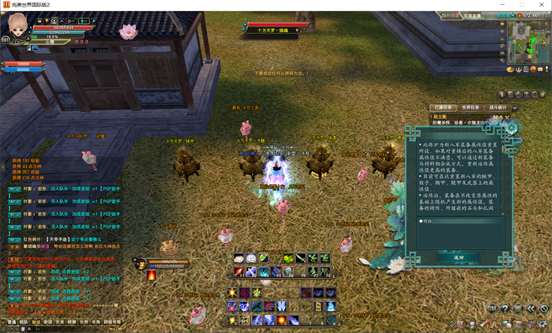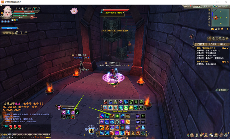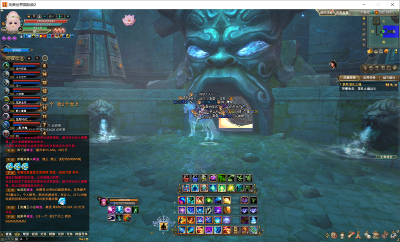 集合状态后,尽量还是由妖兽去吸引仇恨,但是并不强求,其他重甲或者装备好的玩家也可以吸引仇恨。羽灵使用五气朝元继续群加,流银宫除了最后一关外几乎没有开蓝阵的区域。