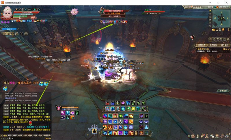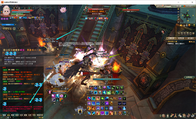 击败五王后,暴君之子·穆释桓终于出现,法系打手站左手边蓝色箭头所示处,妖兽吸引仇恨与其他物理职业站在右手边绿色箭头处(老传统了哈)。其机制为: