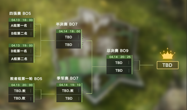4月13日:决赛圈,双胜败者组第一轮、败者组第一轮、胜者组决赛,三局两胜制。