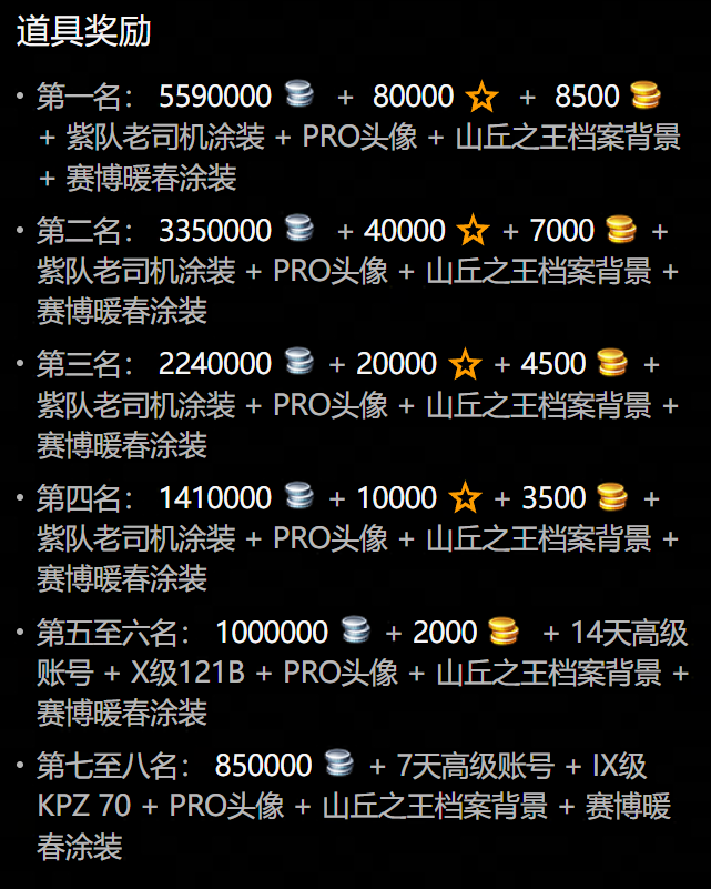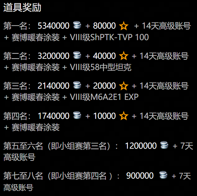 · 若坦克摧毁总数相同,则比较以上队伍之间交手对阵时候的造成伤害总量,总量高者排名靠前。
