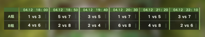 //AB小组组内进行小组循环,共六轮,每轮两场同开,选取其中一场进行直播。