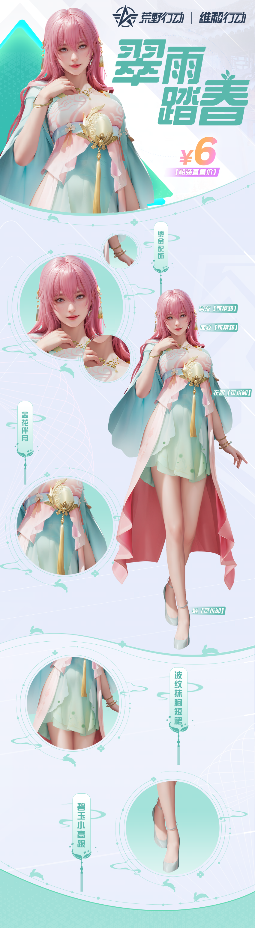 荒野行动清明主题粉装【翠雨踏春】,4月4日准时上线,只需6元就能把春天接回家~