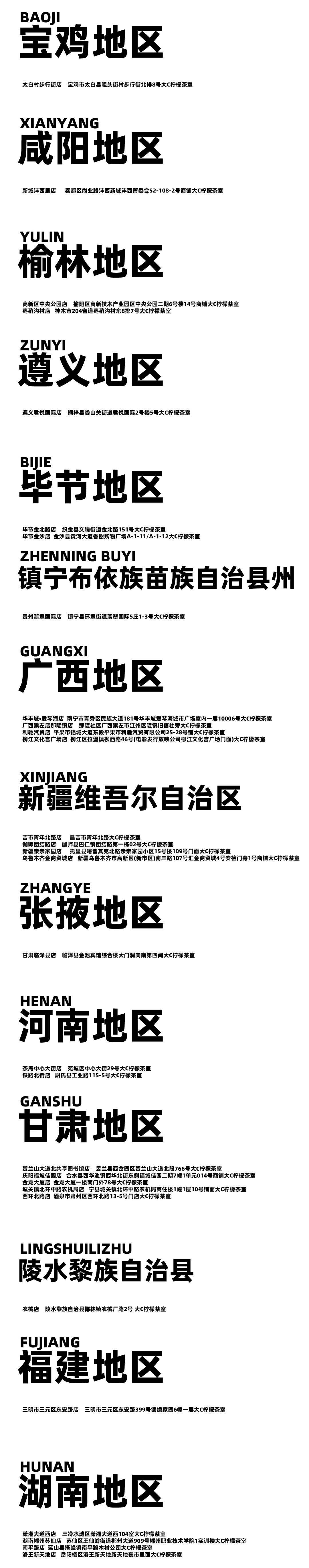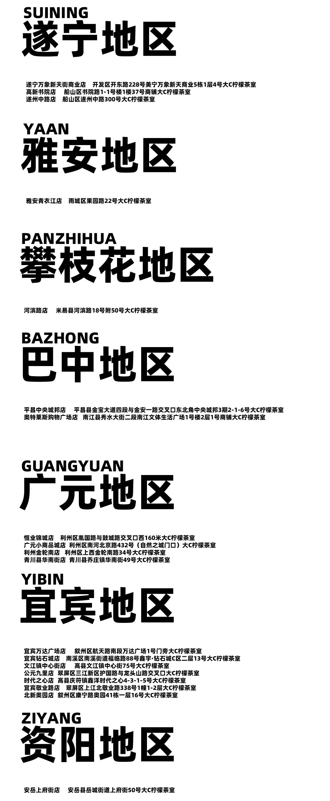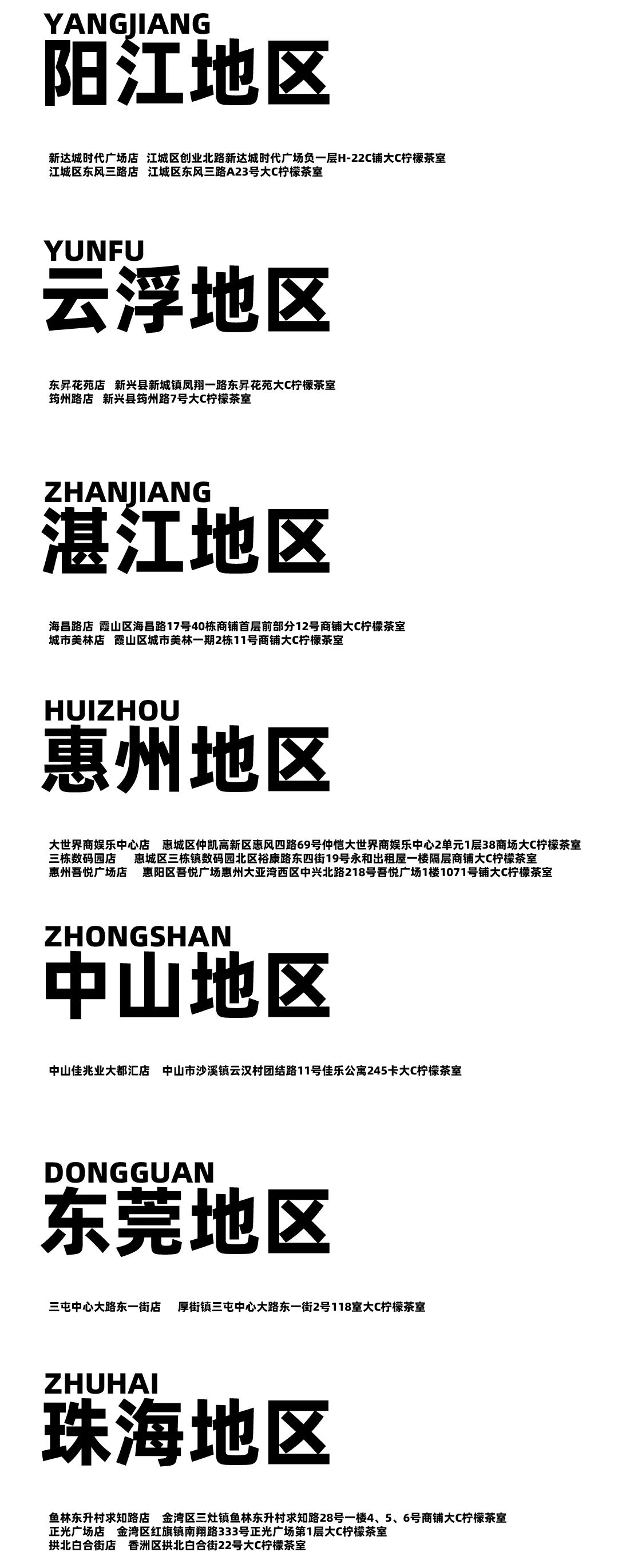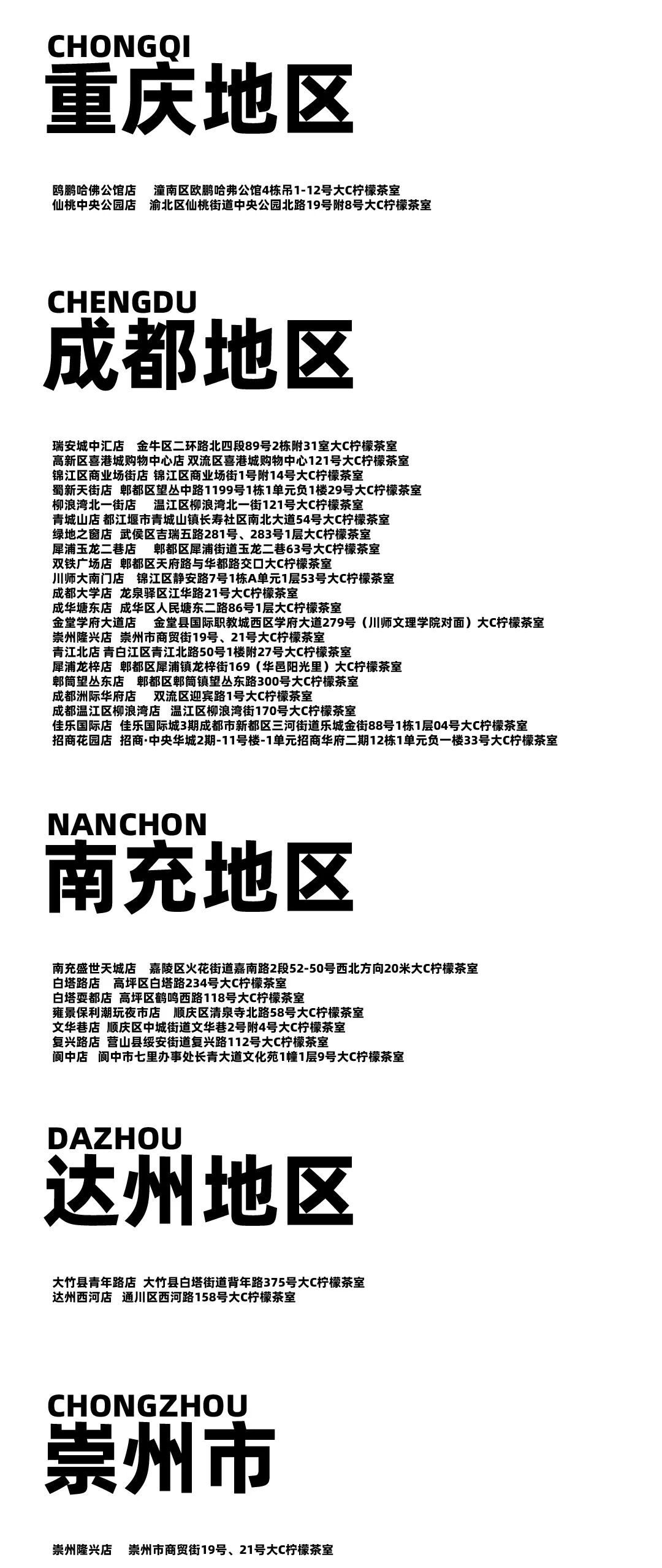 摘要:只有在这些地方才可饮到你喜欢的大C柠檬茶,不在以下列表中的门店与我们没有任何关系,更新至2024-3-9