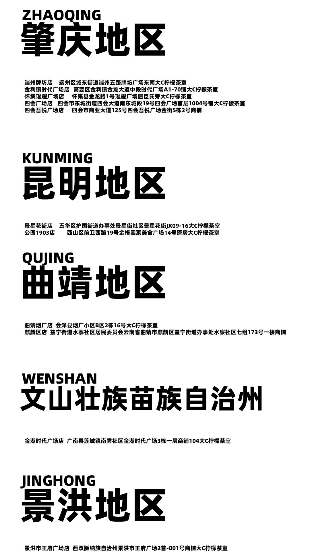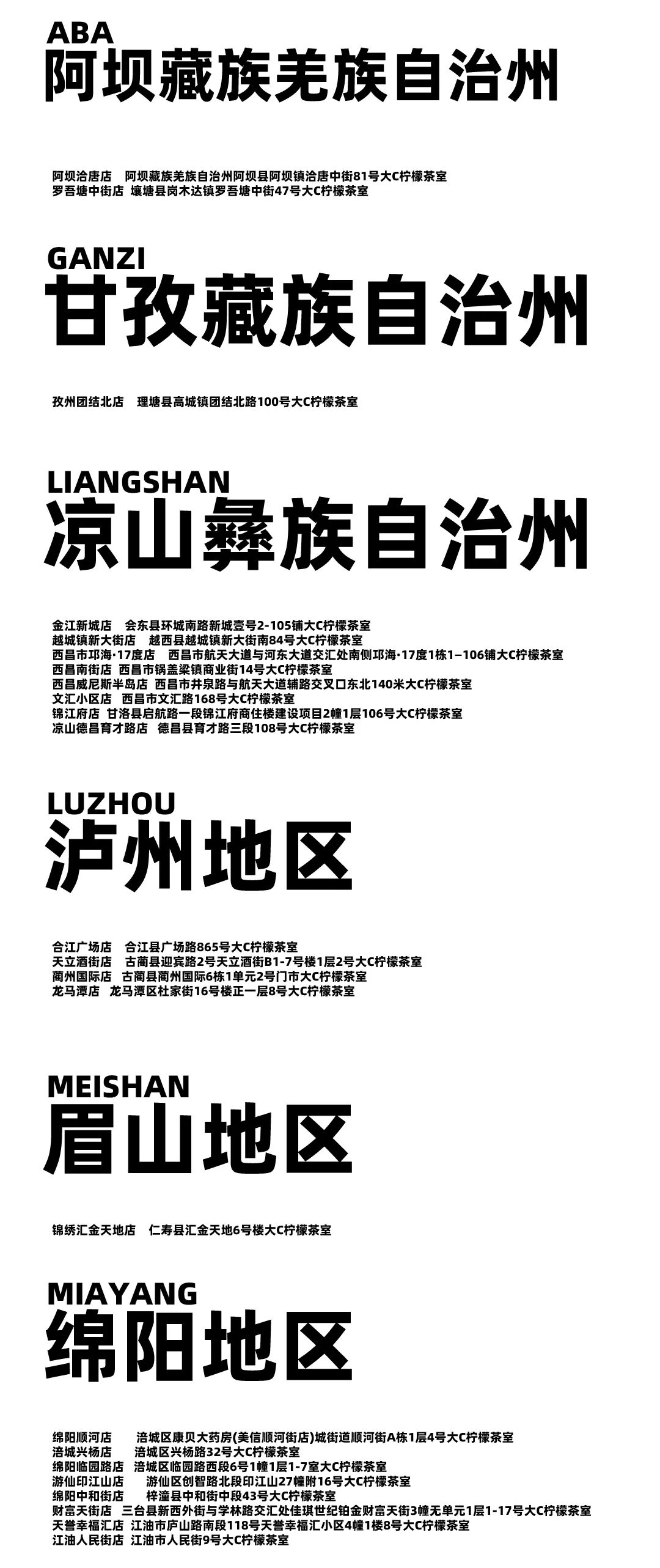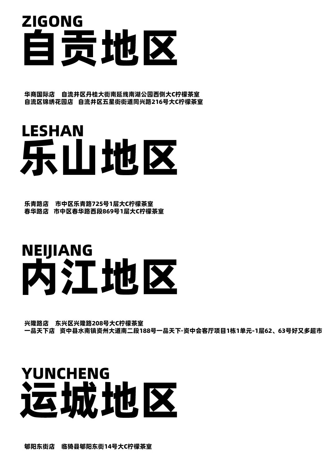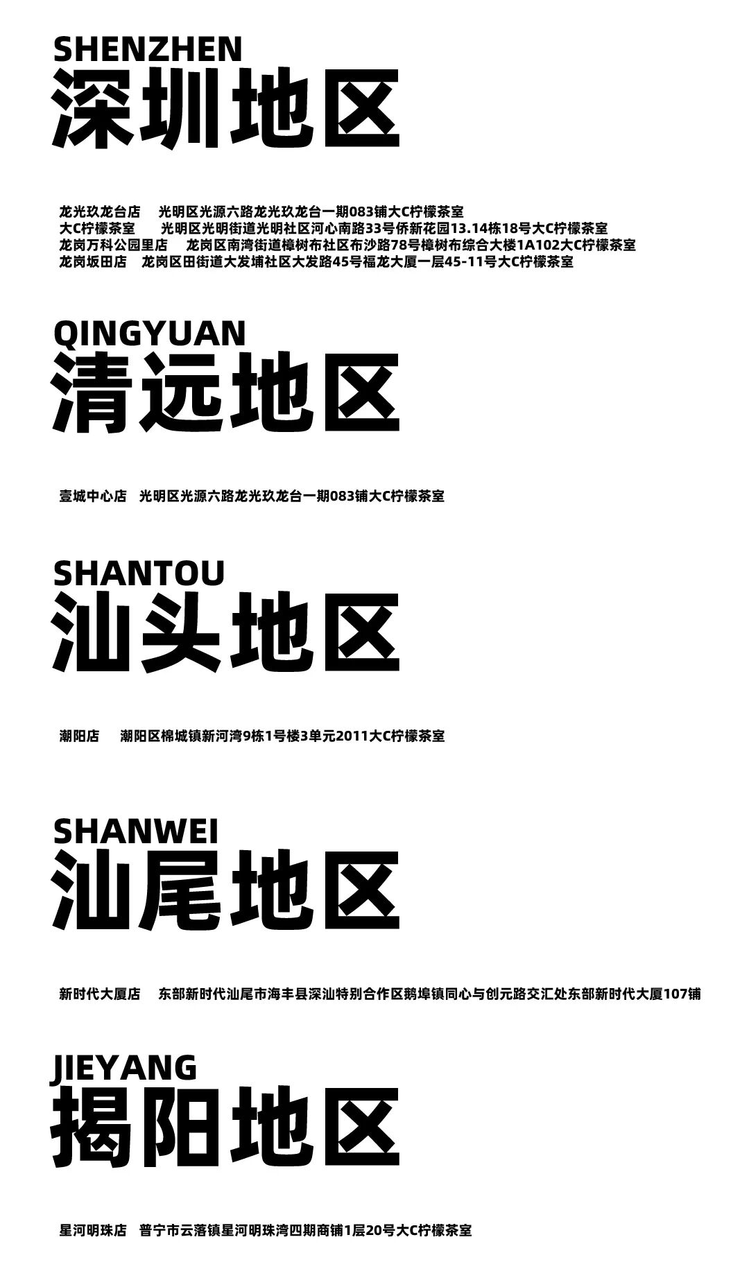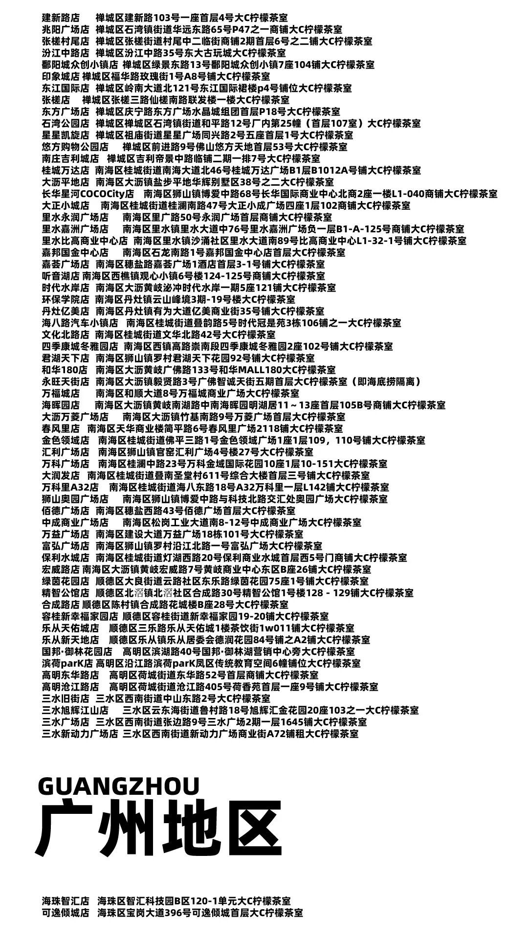 摘要:只有在这些地方才可饮到你喜欢的大C柠檬茶,不在以下列表中的门店与我们没有任何关系,更新至2024-3-9