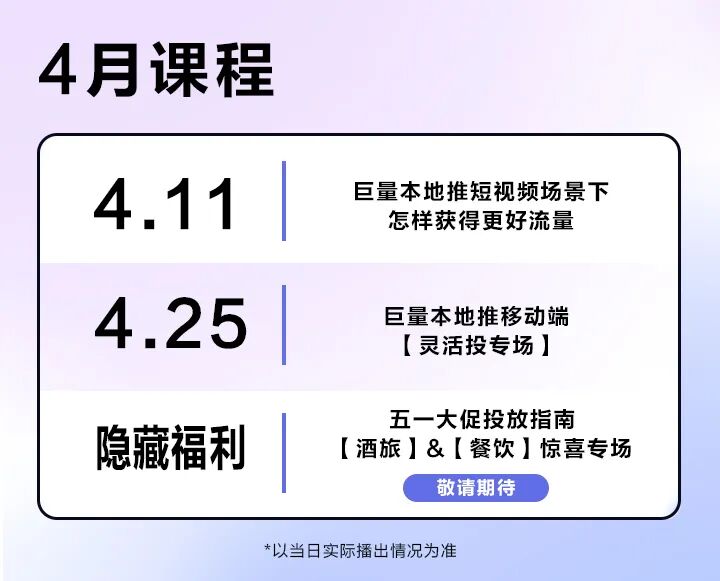巨量本地推4月学堂,我们等你来~