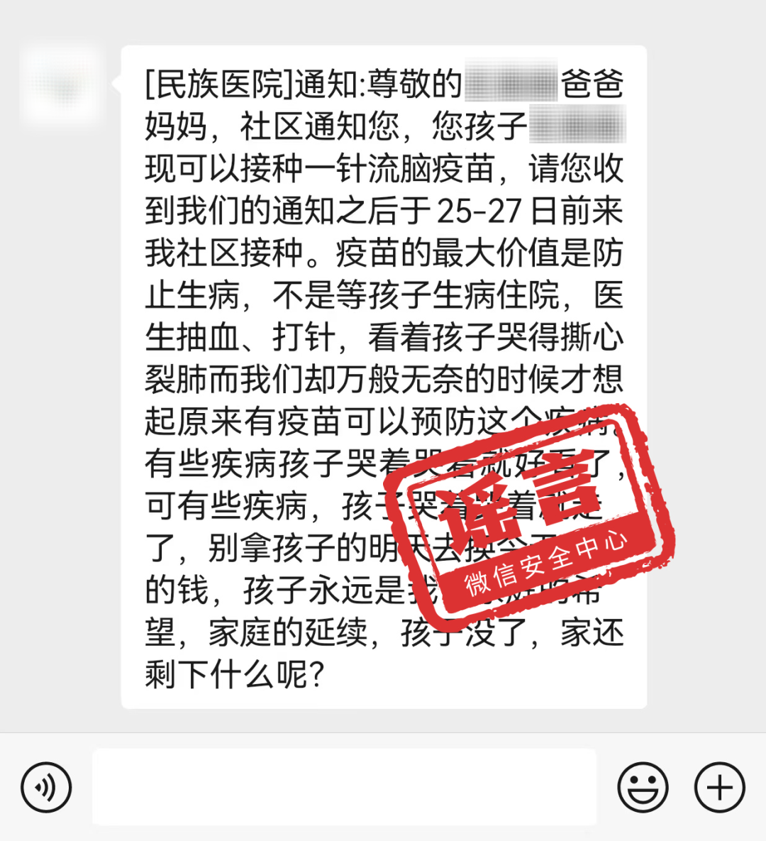 近日,有网友称,收到了署名为民族医院的有关接种流脑疫苗的通知,引发了广大家长的关注和警觉。