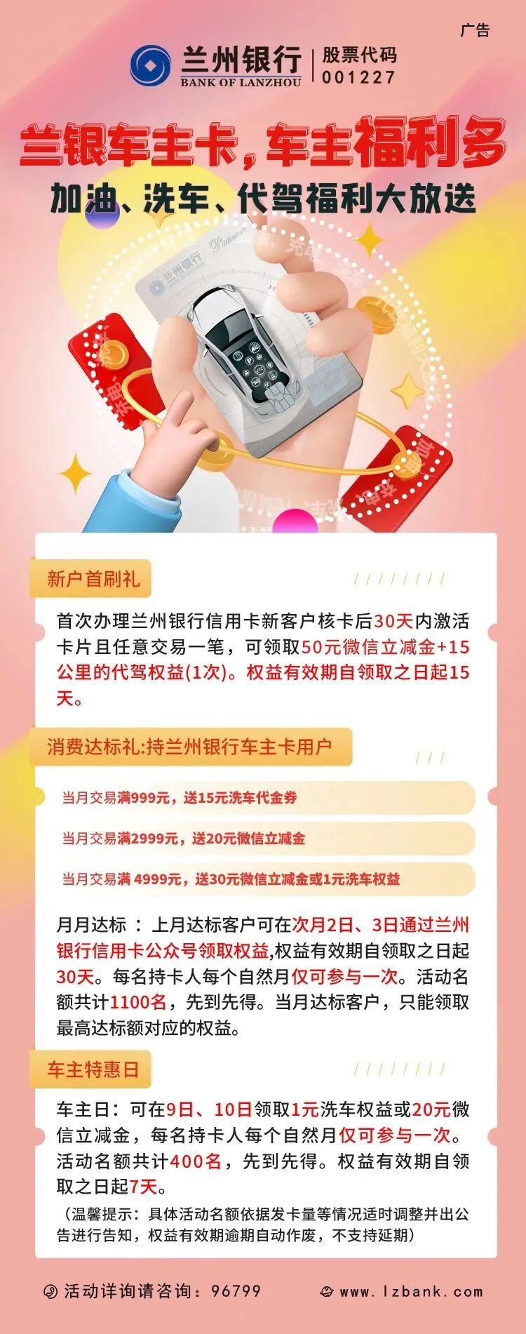 文章内容来源于公众号:兰州银行信用卡,点此可查看原文,内容版权归相关企业所有,本网站仅供交流学习。若涉及版权问题或存在侵权情况,请及时与我们联系,我们将第一时间进行删除处理。