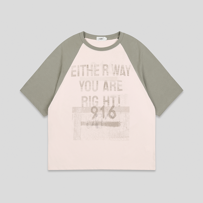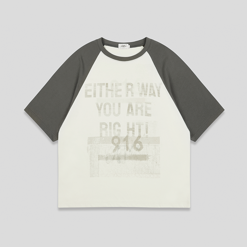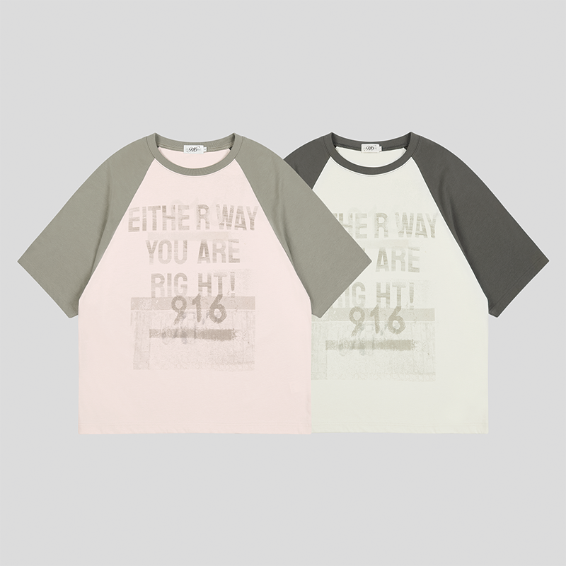 GOODBAI 916 slogan印花做旧oversize插肩短袖T恤