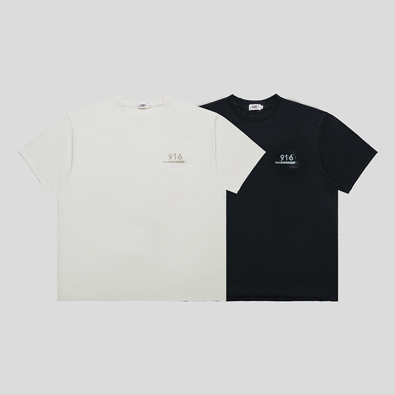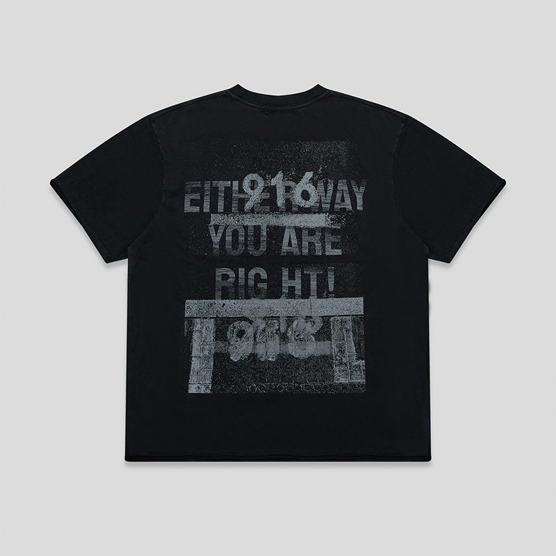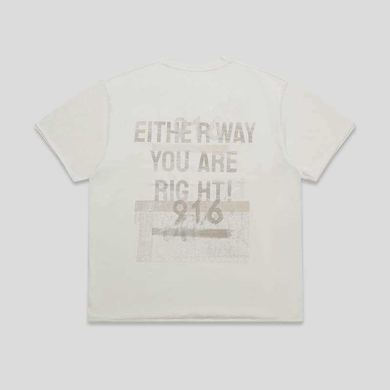 GOODBAI 916 slogan做旧印花oversize毛边短袖T恤