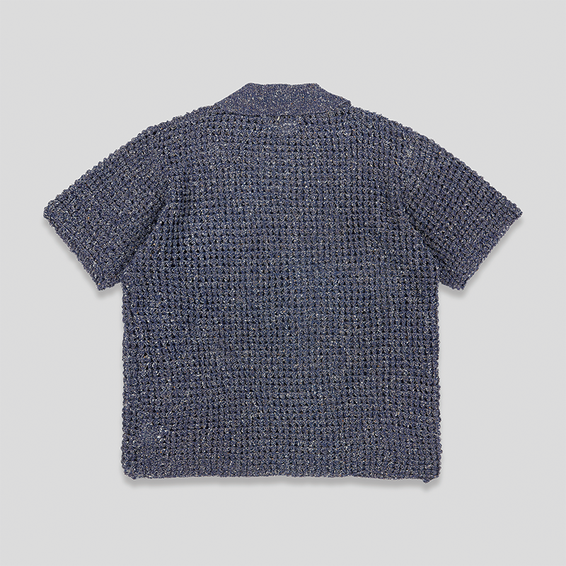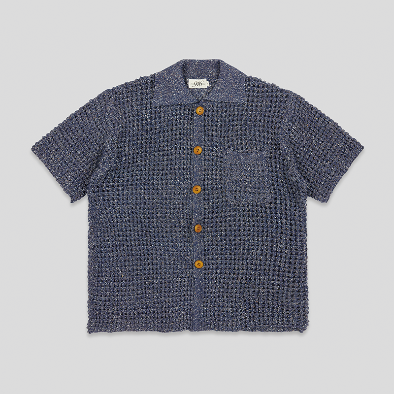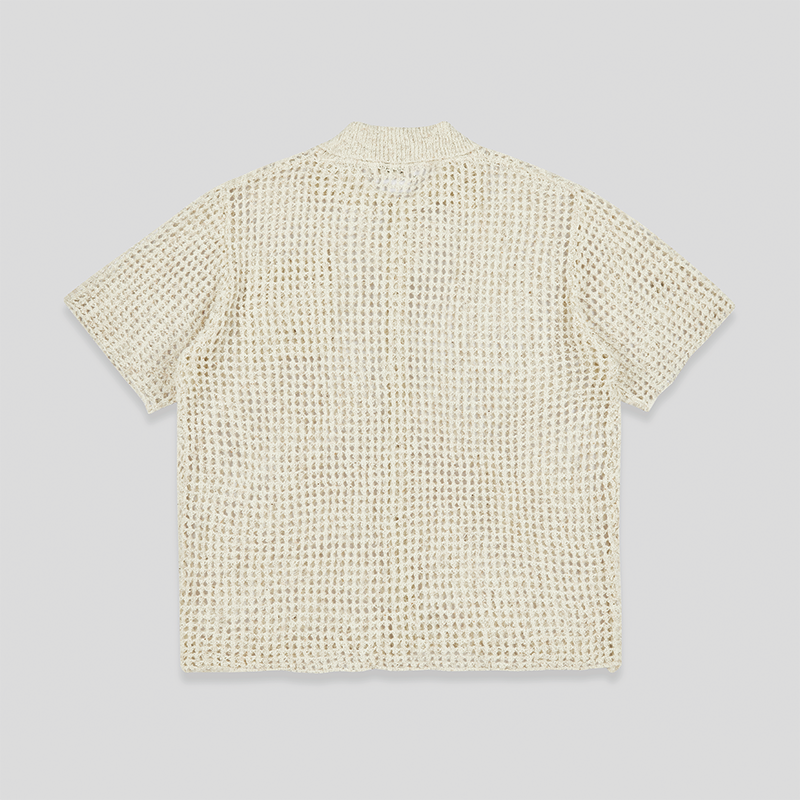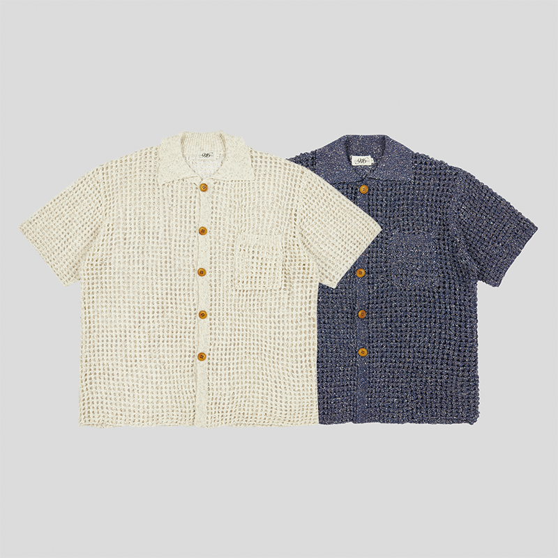 以镂空针织设计演绎经典翻领衬衫版型,丰富春夏造型层次;单侧口袋,兼具装饰性和功能性;搭配仿木纹纽扣,增添复古细节。