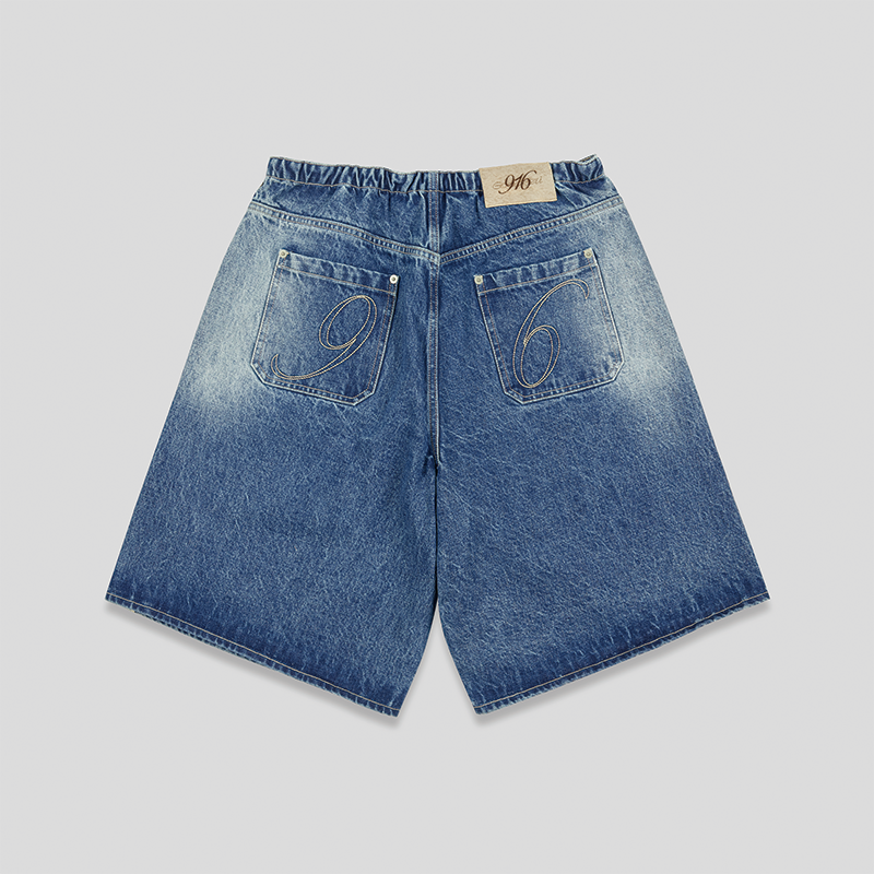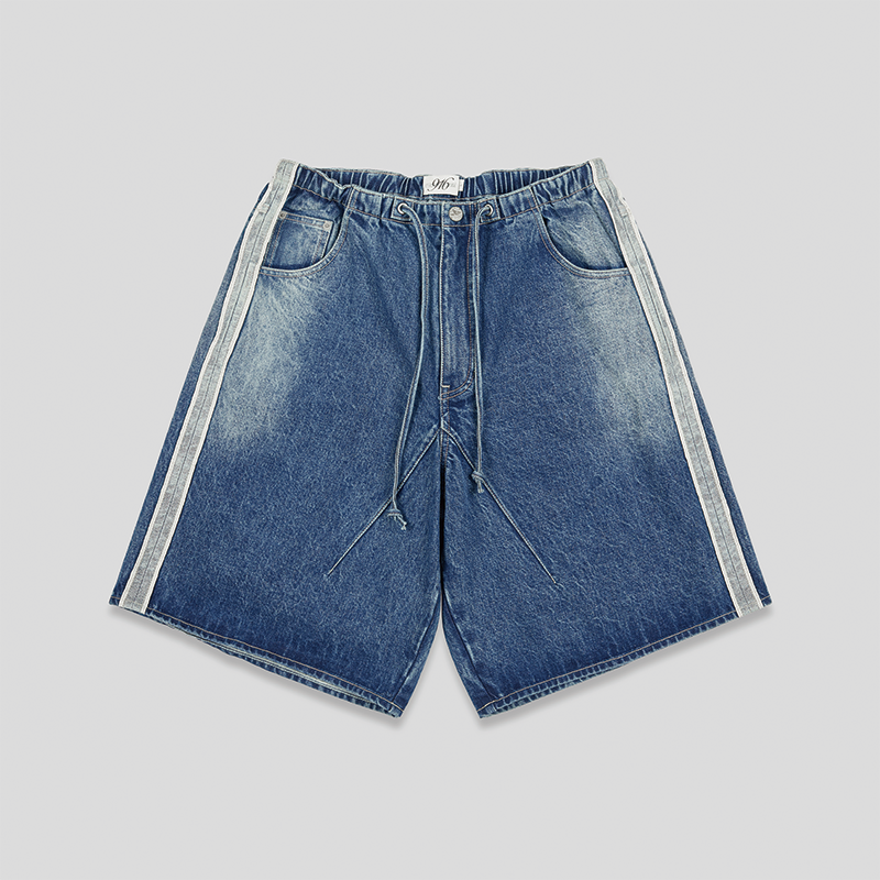GOODBAI 916 logo绣花侧边织带牛仔短裤
