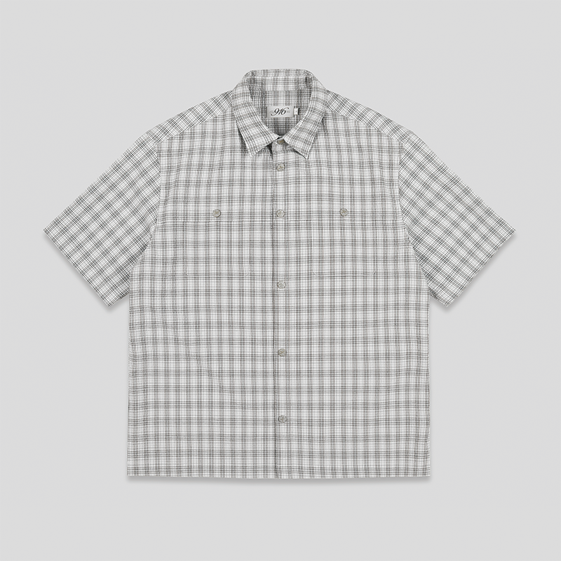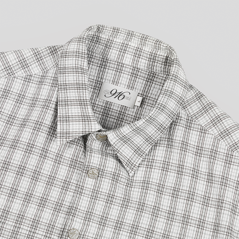 GOODBAI 916 纽扣格纹短袖衬衫