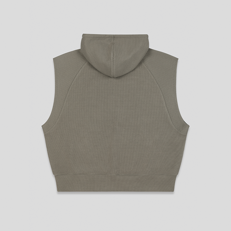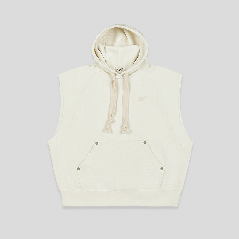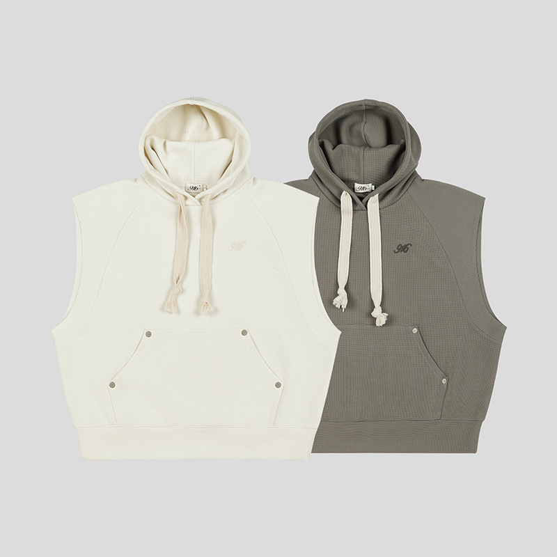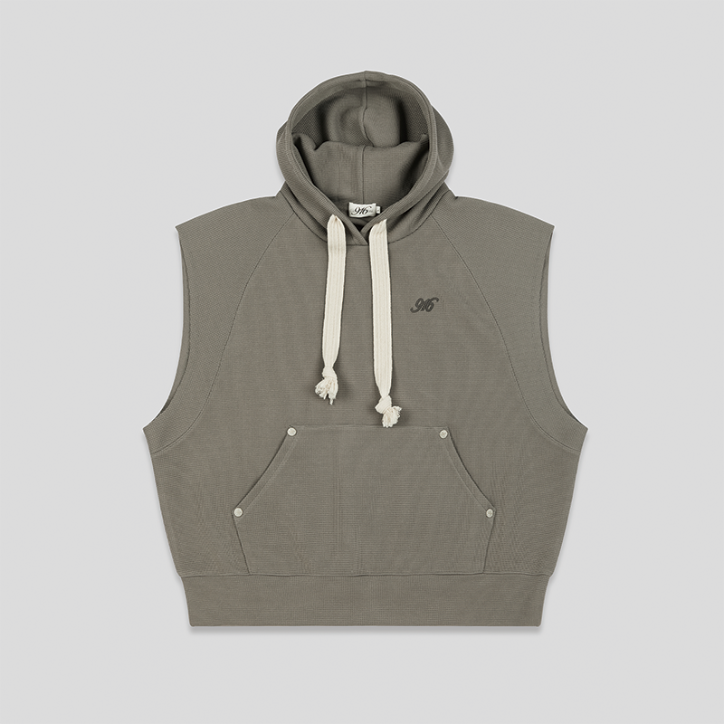 GOODBAI 916 logo刺绣插肩连帽无袖华夫格卫衣