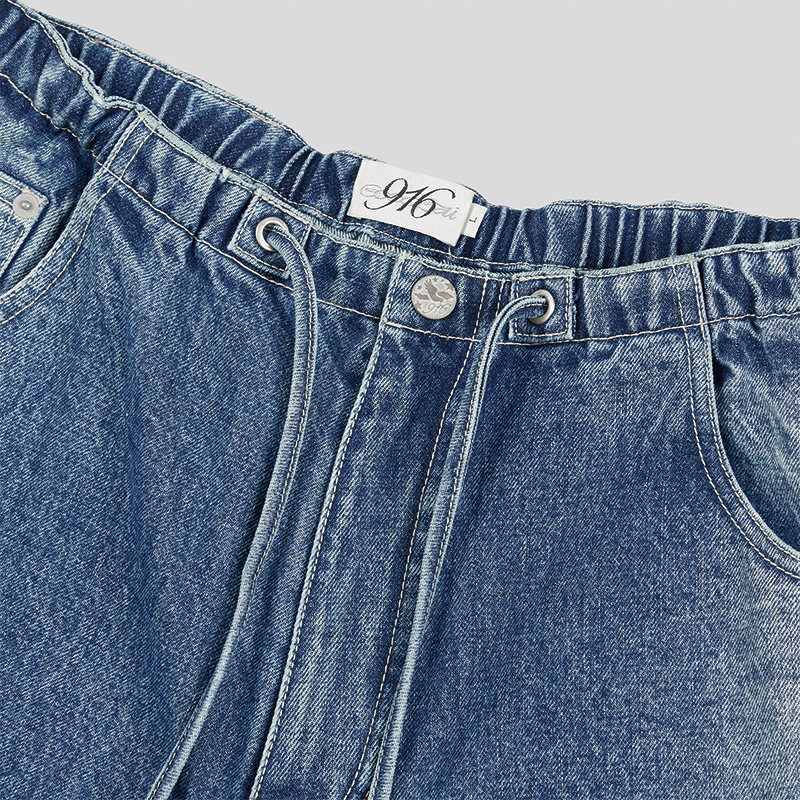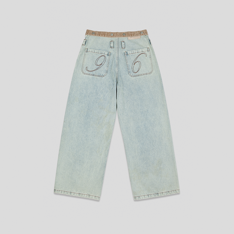 GOODBAI 916 logo绣花腰带可拆水洗阔腿牛仔裤