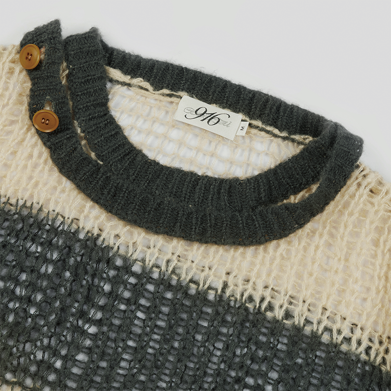 GOODBAI 916 圆领纽扣撞色镂空套头毛衣