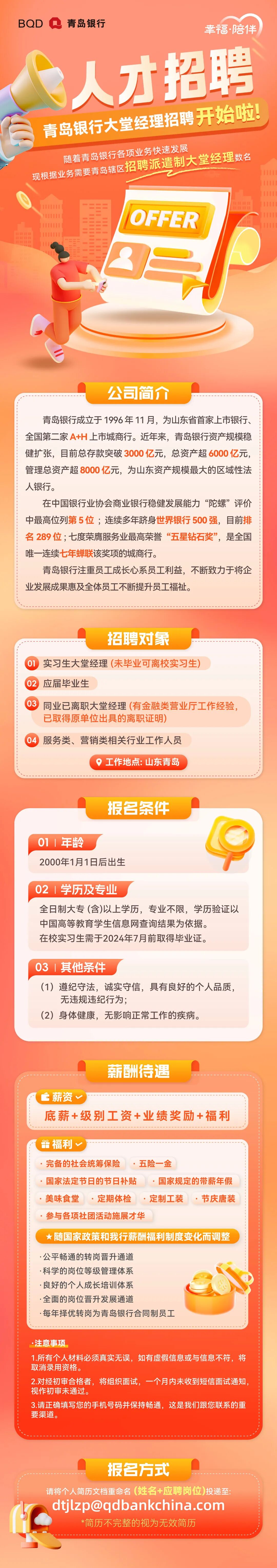 文章内容来源于公众号:青岛银行,点此可查看原文,内容版权归相关企业所有,本网站仅供交流学习。若涉及版权问题或存在侵权情况,请及时与我们联系,我们将第一时间进行删除处理。