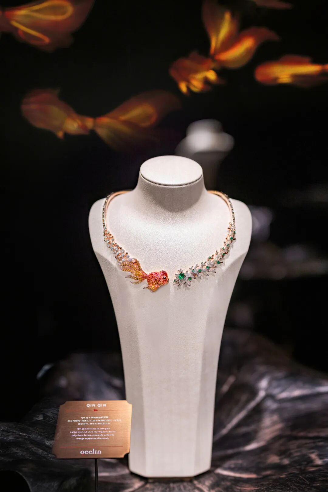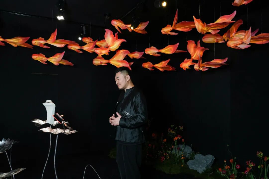 映着金色荷叶,抬头便可见悠然游曳的金鱼。Qin Qin高级珠宝系列的灵感来源便是自在悠游的金鱼。