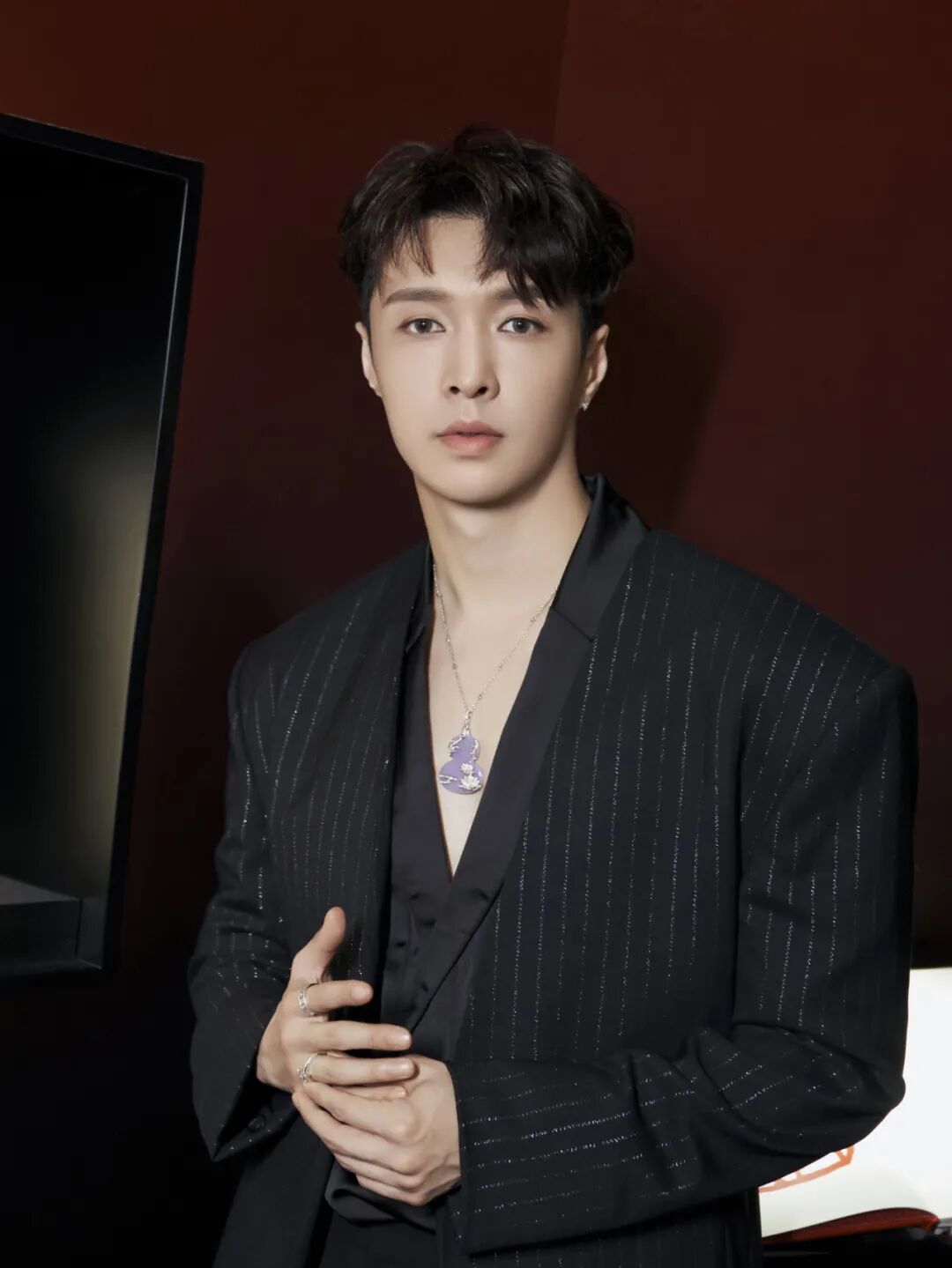 这个紫翡翠不仅看着就很衬他的肤色,更妙的是他还把这款项链,戴出了一种男性独特的气质美,文艺又高级。