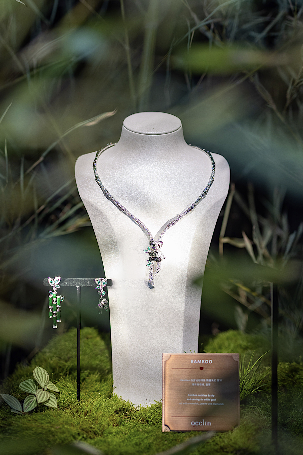 Qeelin此次“游园麒梦”(Miracle Garden)高级珠宝展,旨在致敬中国园林所代表的和谐万象,根据游园动线,以翠竹、莲花、金鱼、花窗及福芦等,呈现野竹分青霭、清莲生高洁、熊猫知心趣、金鱼舞清波之美。