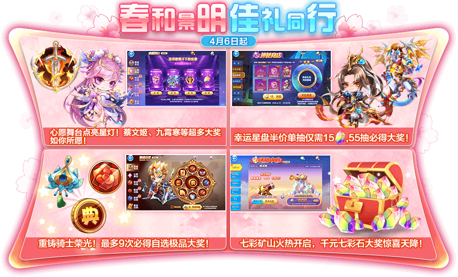 活动期间,4月9日以及4月11日活动当天登陆酷跑国,可分别领取七彩石*5。