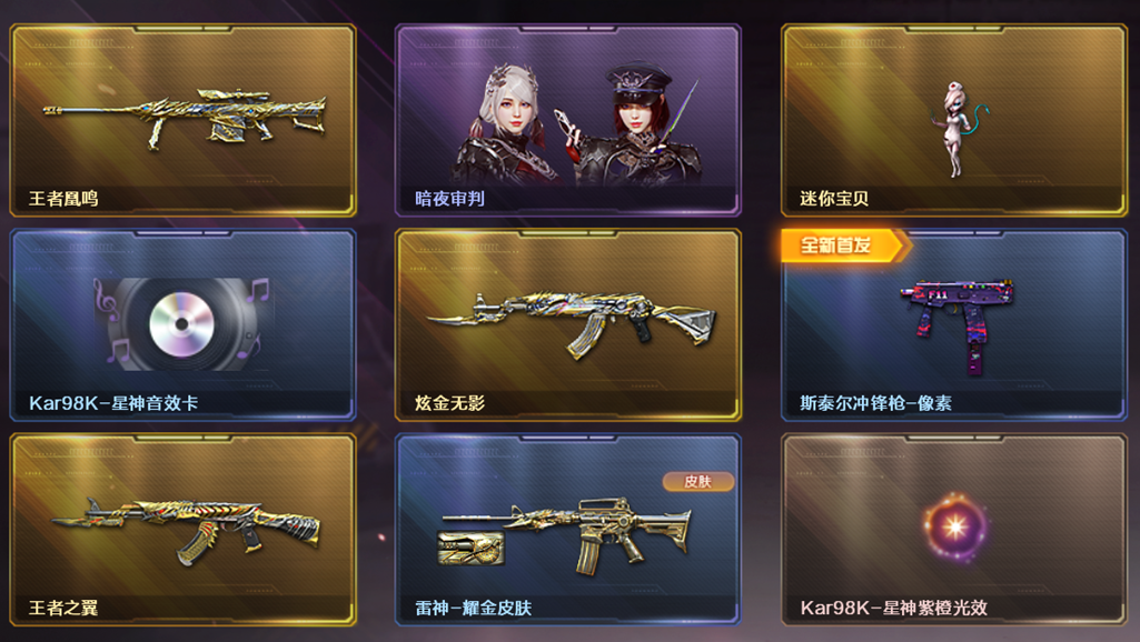 本期王者许愿的奖池中王者凰鸣、星神音效卡、王者之翼、炫金无影以及迷你宝等道具将迎来返场,功能型角色暗夜审判同步来袭,同时像素风系列武器的斯泰尔冲锋枪-像素也将迎来首发。