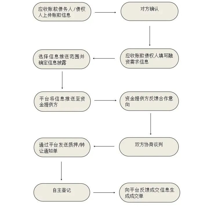 平台为用户提供应收账款融资的信息合作服务,包括账款信息的上传与确认、在线融资申请、在线通知债权转让/质押、融资成交信息反馈。