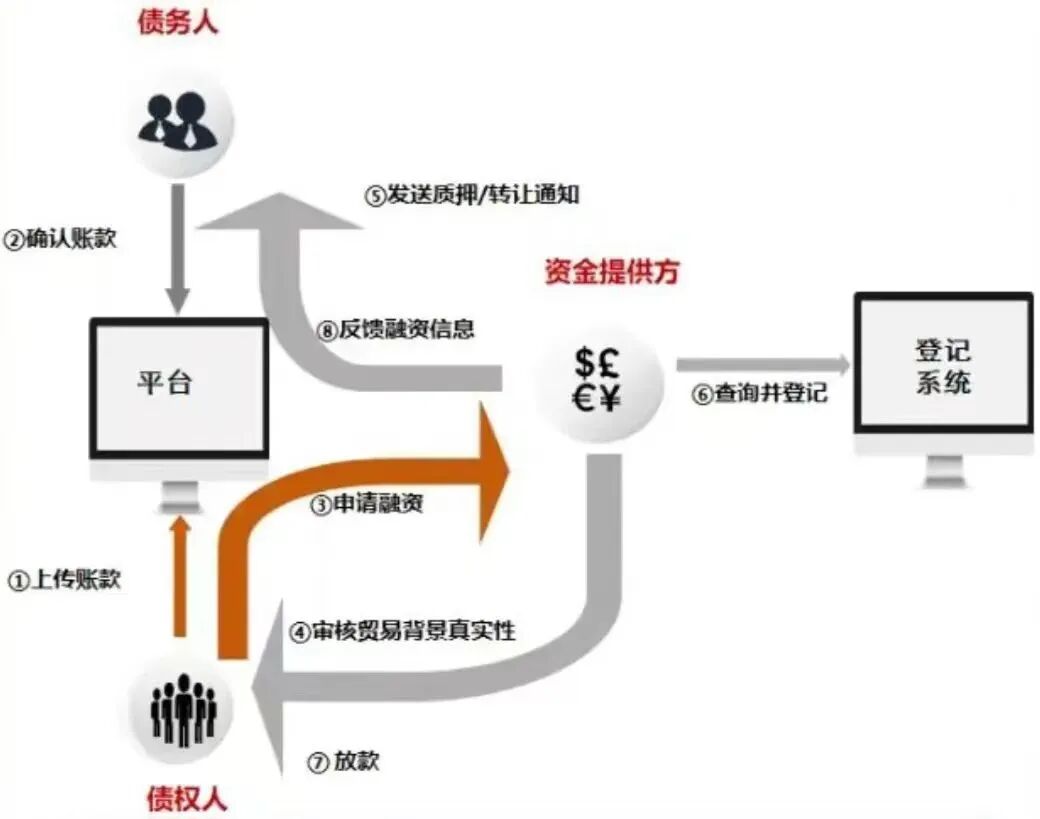 平台所指应收账款为《民法典》、《动产和权利担保统一登记办法》所规定的应收账款。具体指应收账款债权人因提供一定的货物、服务或设施而获得的要求应收账款债务人付款的权利以及依法享有的其他付款请求权,包括现有的和将有的金钱债权,但不包括因票据或其他有价证券而产生的付款请求权,以及法律、行政法规禁止转让的付款请求权。包括下列权利: