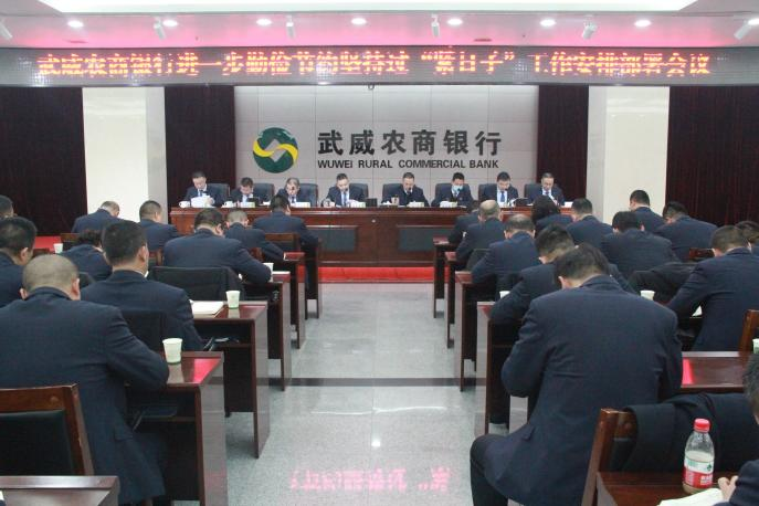 为认真贯彻落实党中央、国务院及省市区政府关于“过紧日子”的决策部署,深入落实中央八项规定及中央经济工作会议精神,全面落实省农信联社关于勤俭节约“过紧日子”的工作要求。2月28日,武威农商银行召开进一步勤俭节约坚持“过紧日子”工作安排部署会议。领导班子成员、各部门总经理、副总经理,各支行行长、副行长,分理处主任及机关全体员工在现场参加了会议,基层全体员工通过“钉钉”直播参加会议。