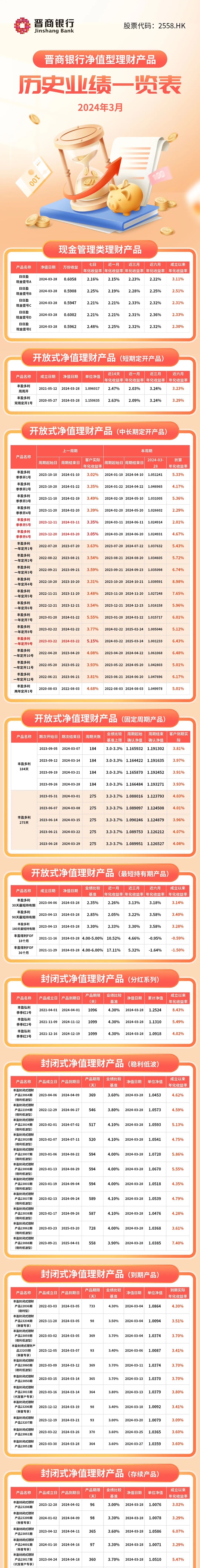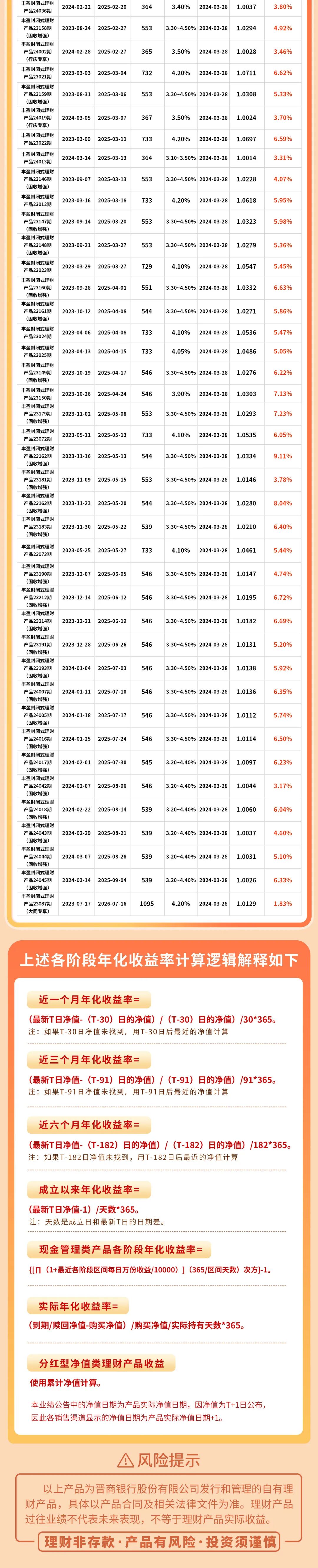 摘要:晋商银行2024年3月净值型理财产品历史业绩一览表