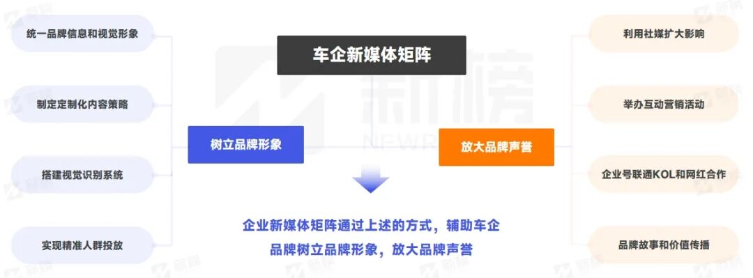 通过矩阵式管理与运营策略,车企塑造出统一且鲜明的企业形象,同时利用新媒体平台的传播力量,进一步巩固品牌口碑。