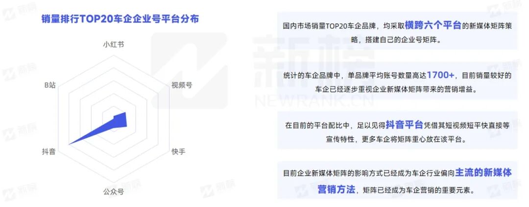 ■国内市场销量TOP20车企品牌,均采取横跨六个平台的新媒体矩阵策略;