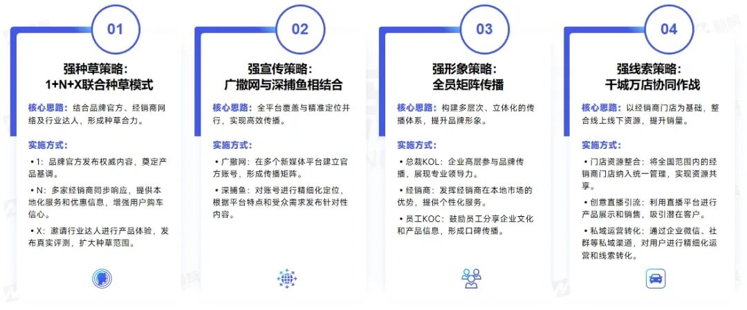 这些策略旨在实现品牌影响力和销量的协同提升,为车企在新媒体时代提供全面的营销解决方案。