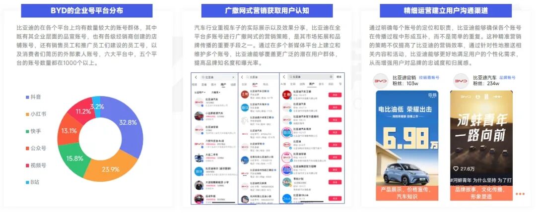 ■比亚迪“广撒网”矩阵:全平台覆盖与精准营销,塑造品牌影响力。