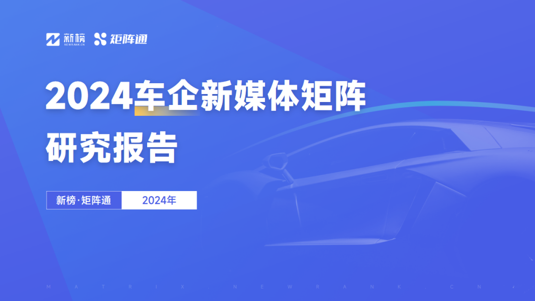 为了更好地帮助车企建设新媒体矩阵,新榜矩阵通特此发布《2024车企新媒体矩阵研究报告》。